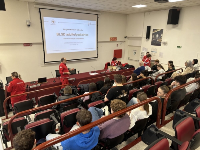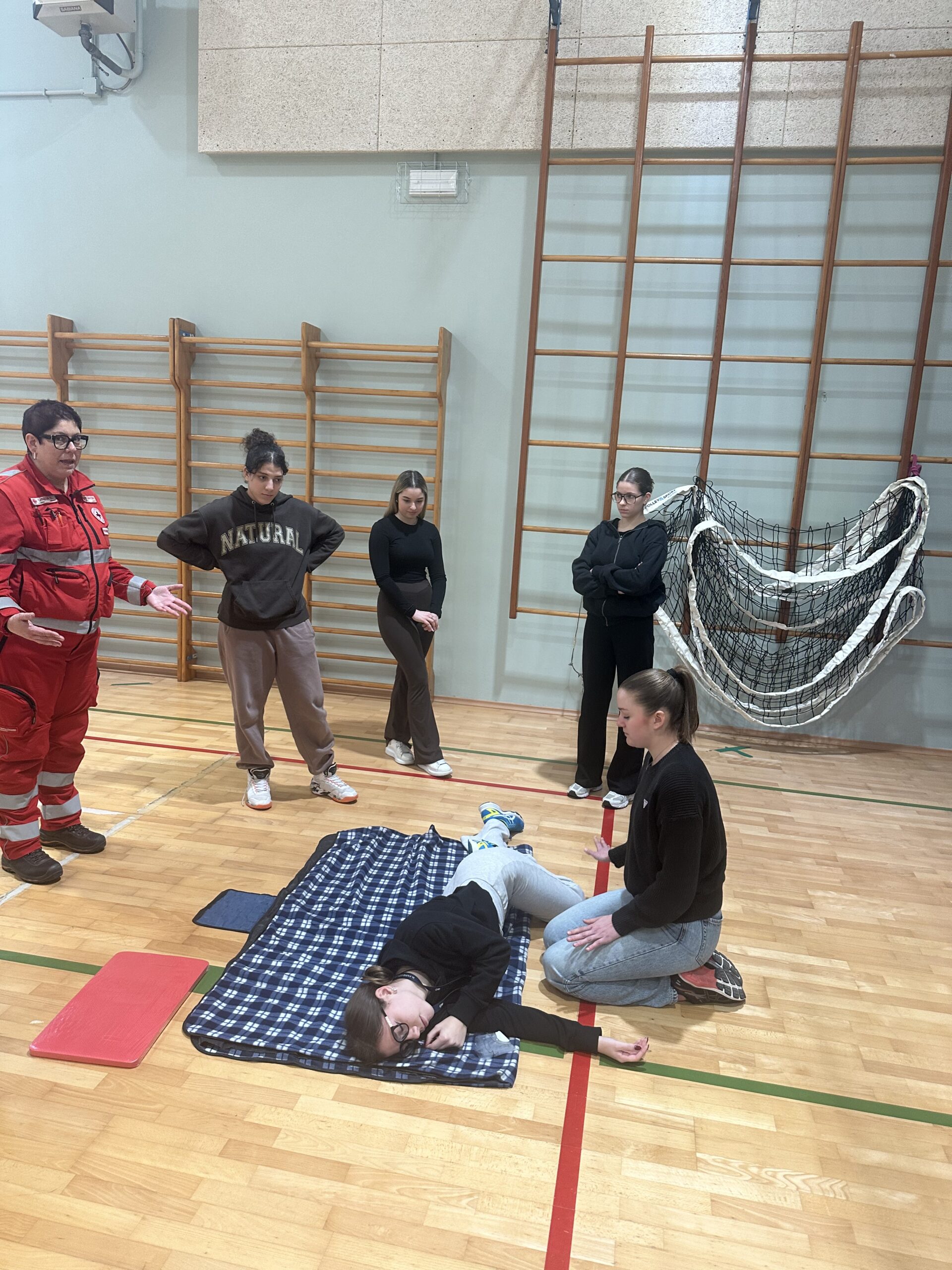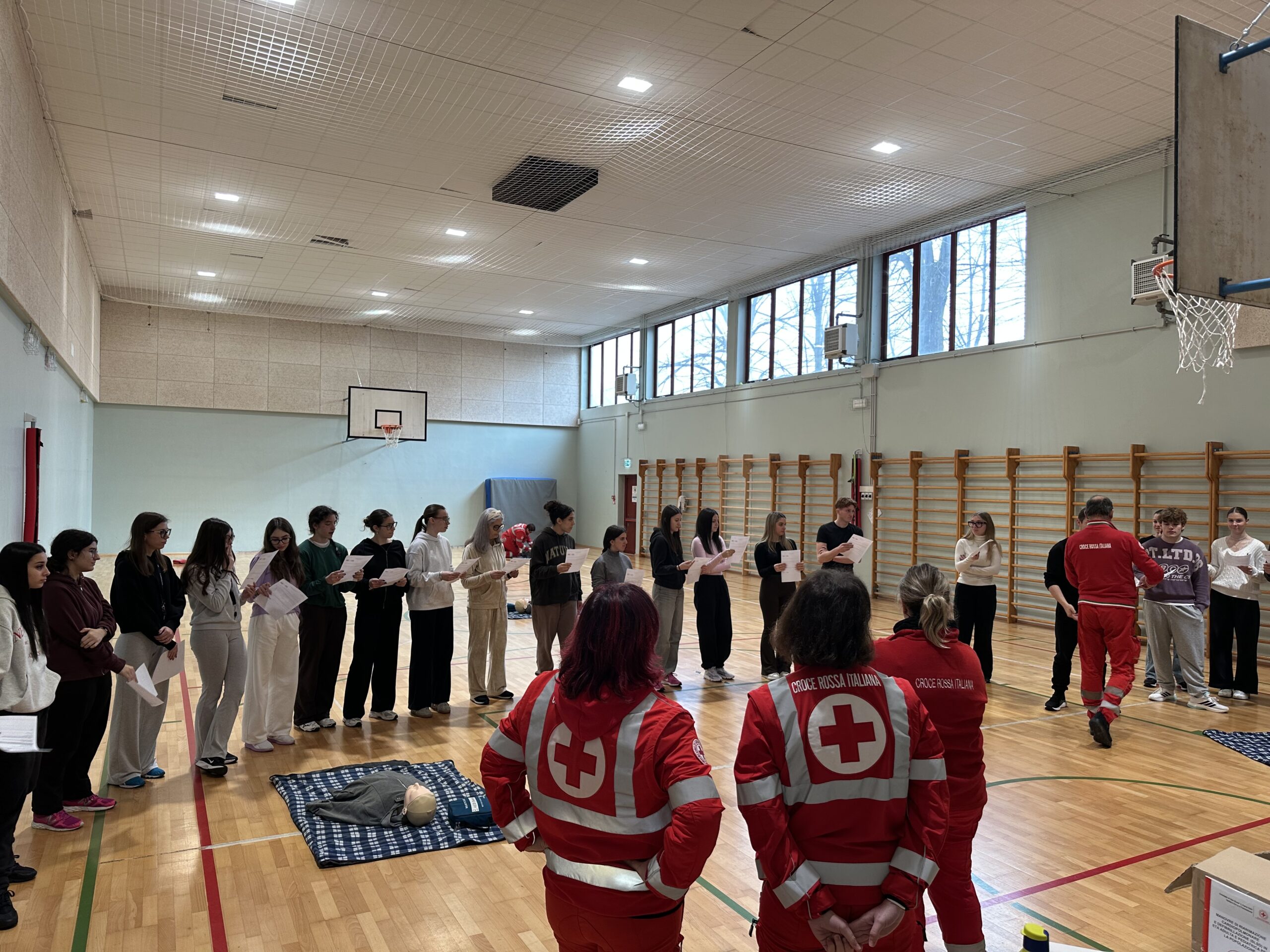 Dopo una prima parte teorica in aula magna , gli studenti hanno svolto le ore di pratica in palestra, imparando l’ uso del defibrillatore, la posizione laterale di sicurezza e la manovre di disostruzione.